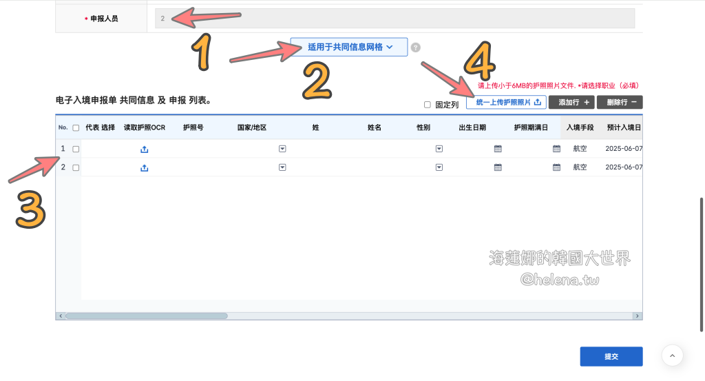 如果有同行者1~9位以內,重複上述步驟,上傳每人的護照資料頁